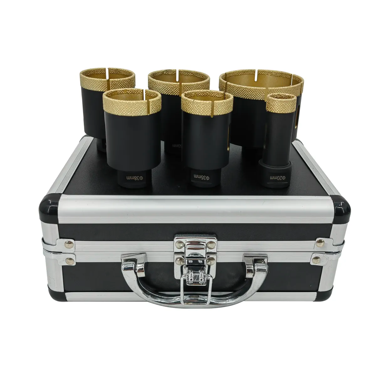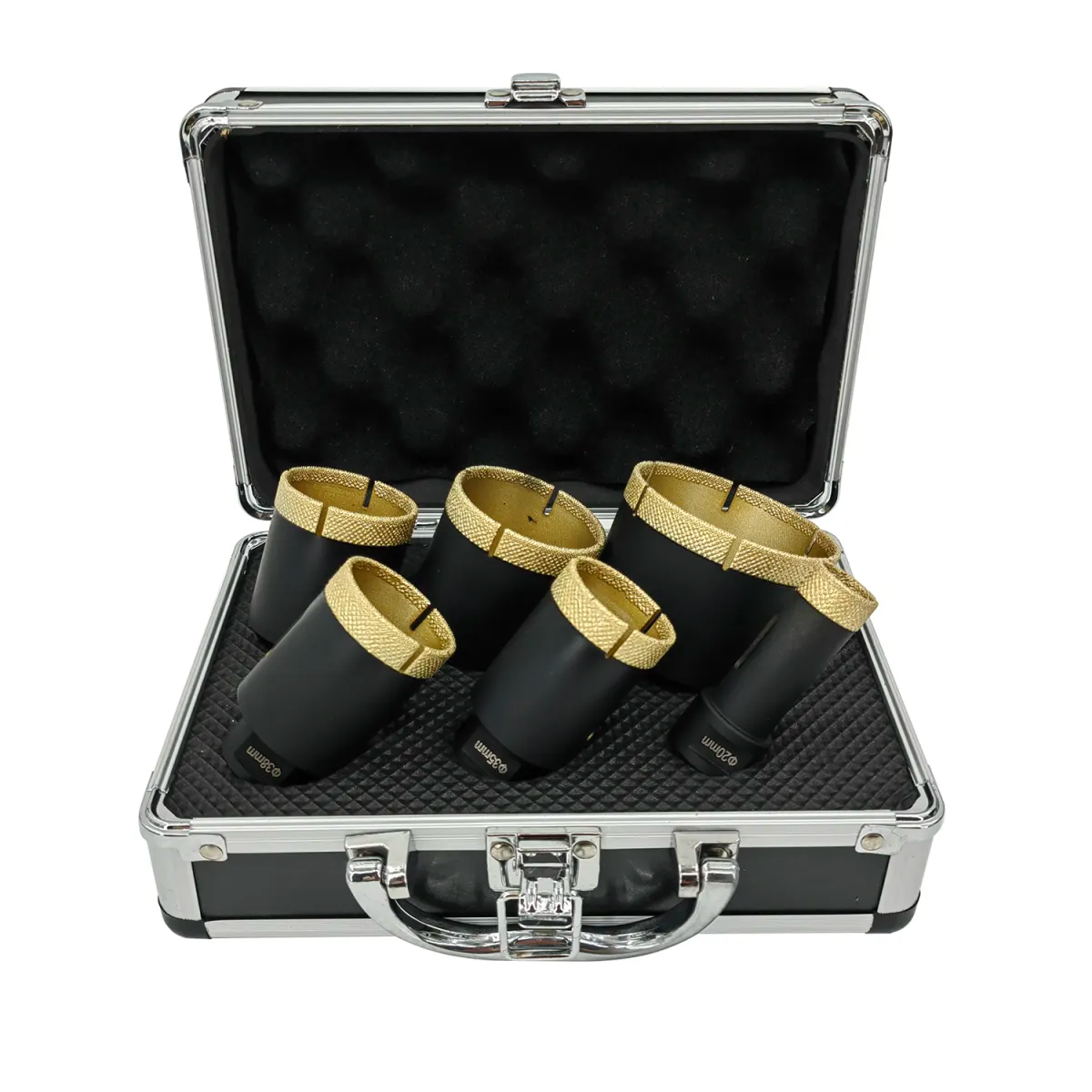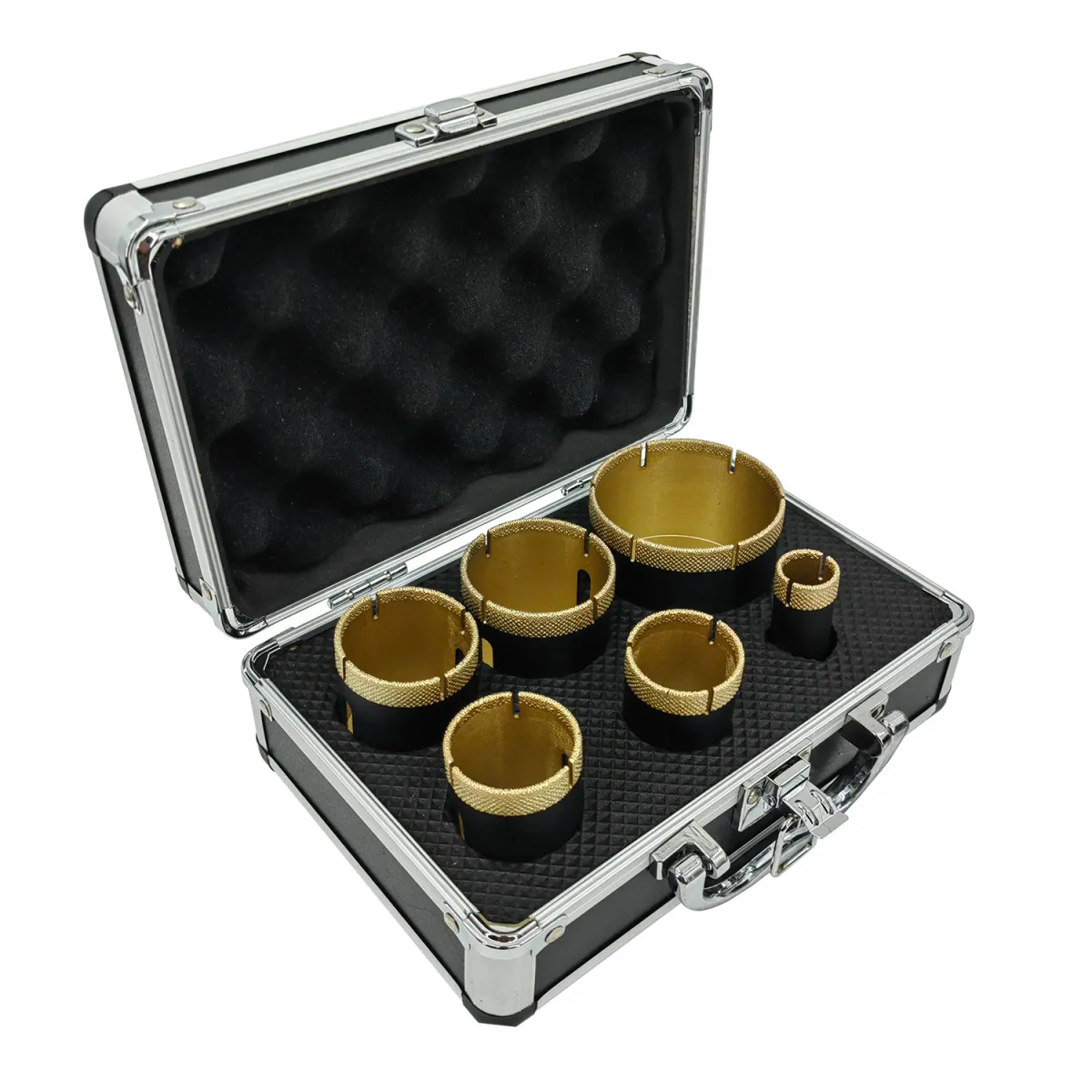 Set diamantnih kronskih žag (7-delni) je vrhunska rešitev za natančno in učinkovito vrtanje v trde materiale, kot so keramične ploščice, porcelan in marmor. Zahvaljujoč najnovejši tehnologiji diamantne prevleke, ki je diagonalno razporejena, te žage zagotavljajo popolno natančnost in gladek rez brez poškodb materiala. Inovativni matrični premaz, odporen proti obrabi, zagotavlja dolgo življenjsko dobo orodja in stalno visoko učinkovitost vrtanja. Set vključuje šest različnih premerov kronskih žag, ki omogočajo vsestranskost pri delu, in je priročno shranjen v aluminijastem kovčku, ki zagotavlja varno shranjevanje in enostaven transport. Ta set je odlična izbira tako za profesionalne uporabnike kot domače mojstre.